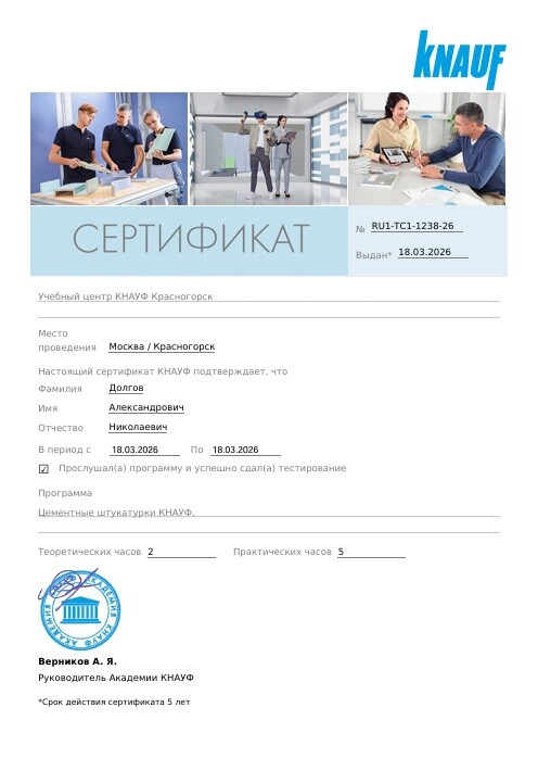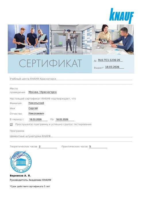 У Вас будут работать профессионалы с большим опытом работы. Качество работ обеспечит специалист с высшим инженерно-строительным образованием